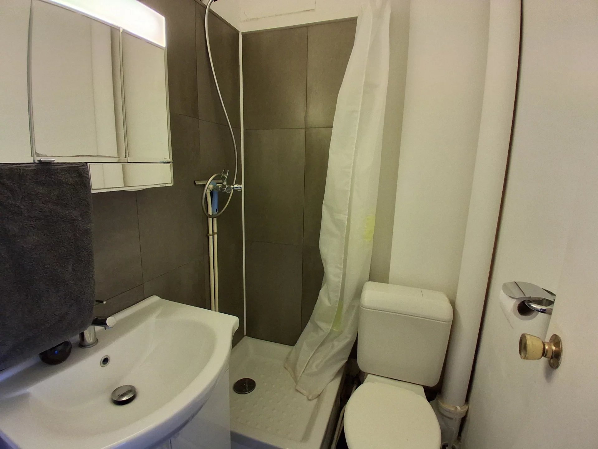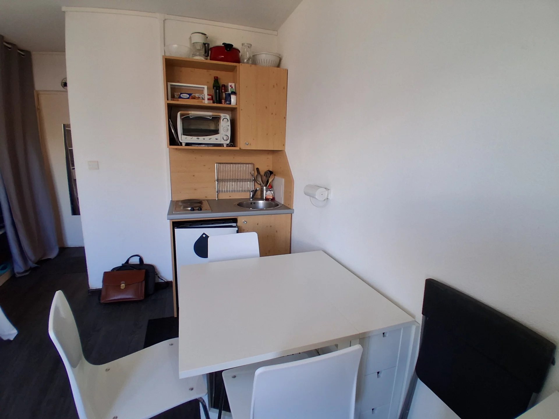 Pied des pistes et commerces avec vue dégagée mini studio de 17.1 m² hab à rénover vendu meublé comprenant entrée, salle d'eau avec wc, séjour avec coin kitchenette louable pour 4 personnes 400 € selon semaine